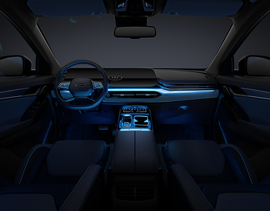 Інтер‘єр Прогресивний дизайн салону яскраво підкреслюють: цифровий екран з двома кольоровими дисплеями діагоналлю 12,3”, стильний сенсорний блок двозонної кліматичної установки, дизайнерське оздоблення дверей, та в додаток незвичайне атмосферне підсвічуванням салону і мультифункціональне рульове колесо з ободом, стильно усіченим у його нижній частині.